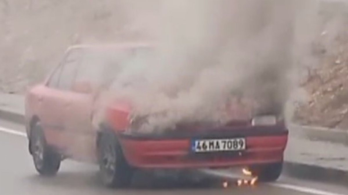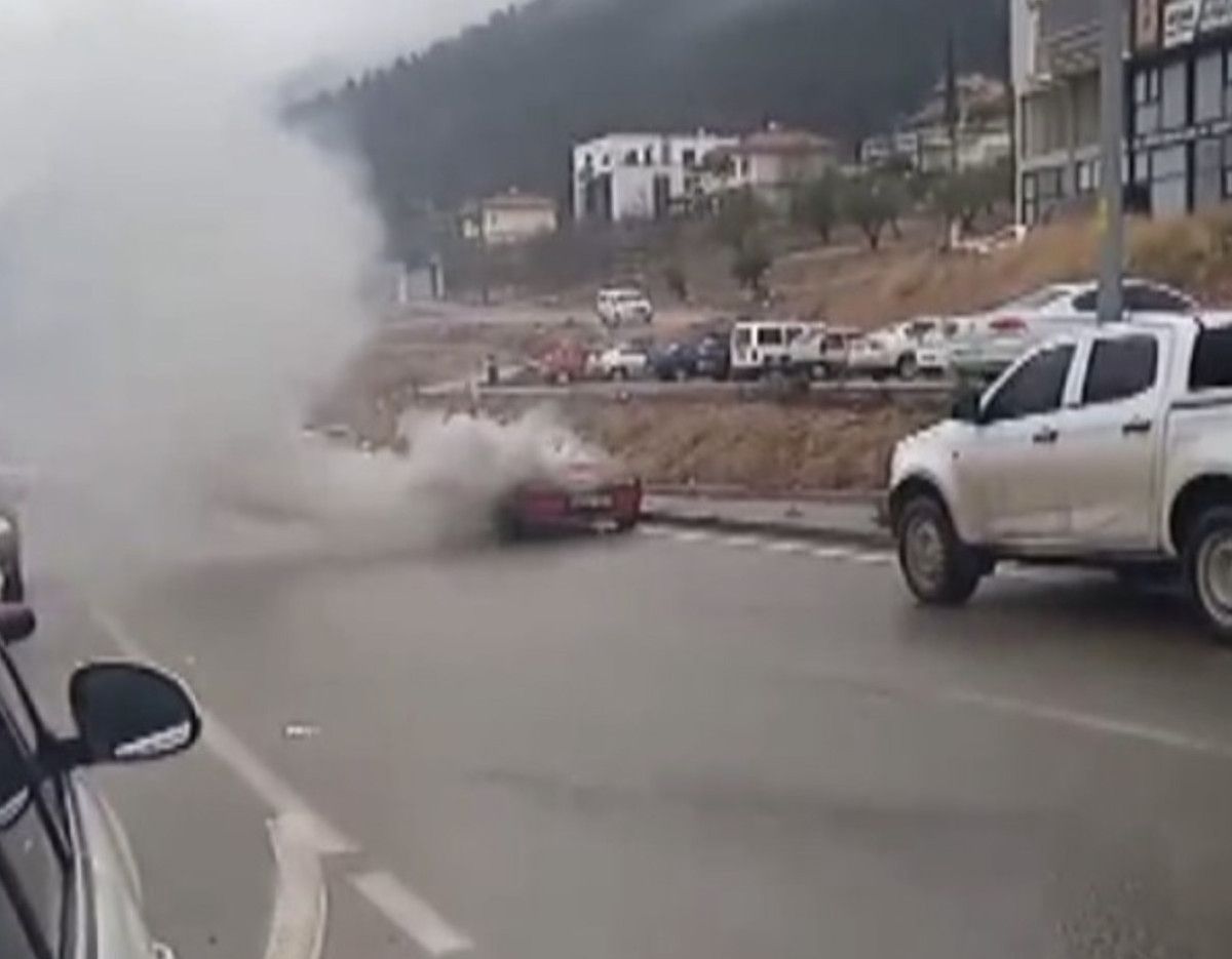 Alevler kısa sürede otomobilin tamamını kapladı.