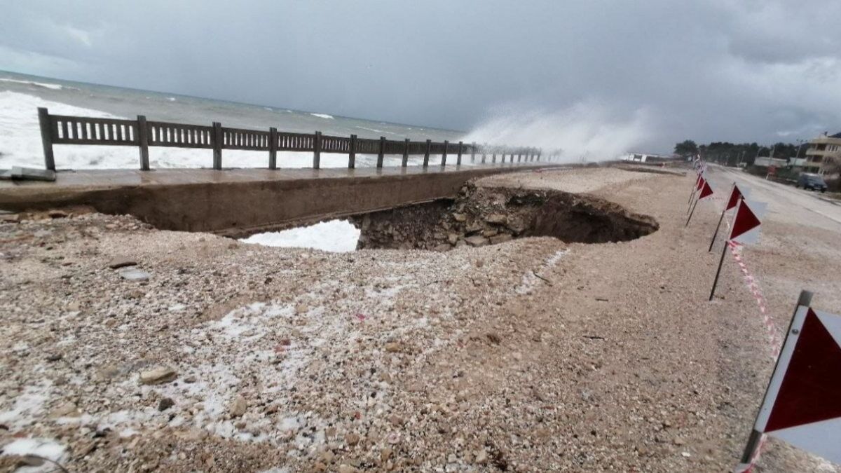 Sahil yolunun 17'nci kilometresinde, Gebeş Mahallesi mevkisinde 4 noktada çökme meydana geldi.
