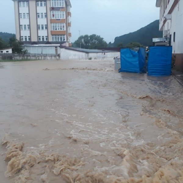 Kastamonu'nun Ağlı ilçesinde kuvvetli yağış ve dolu sele dönüşünce, birçok evin bodrum katlarını ve bazı işyerlerini su bastı.