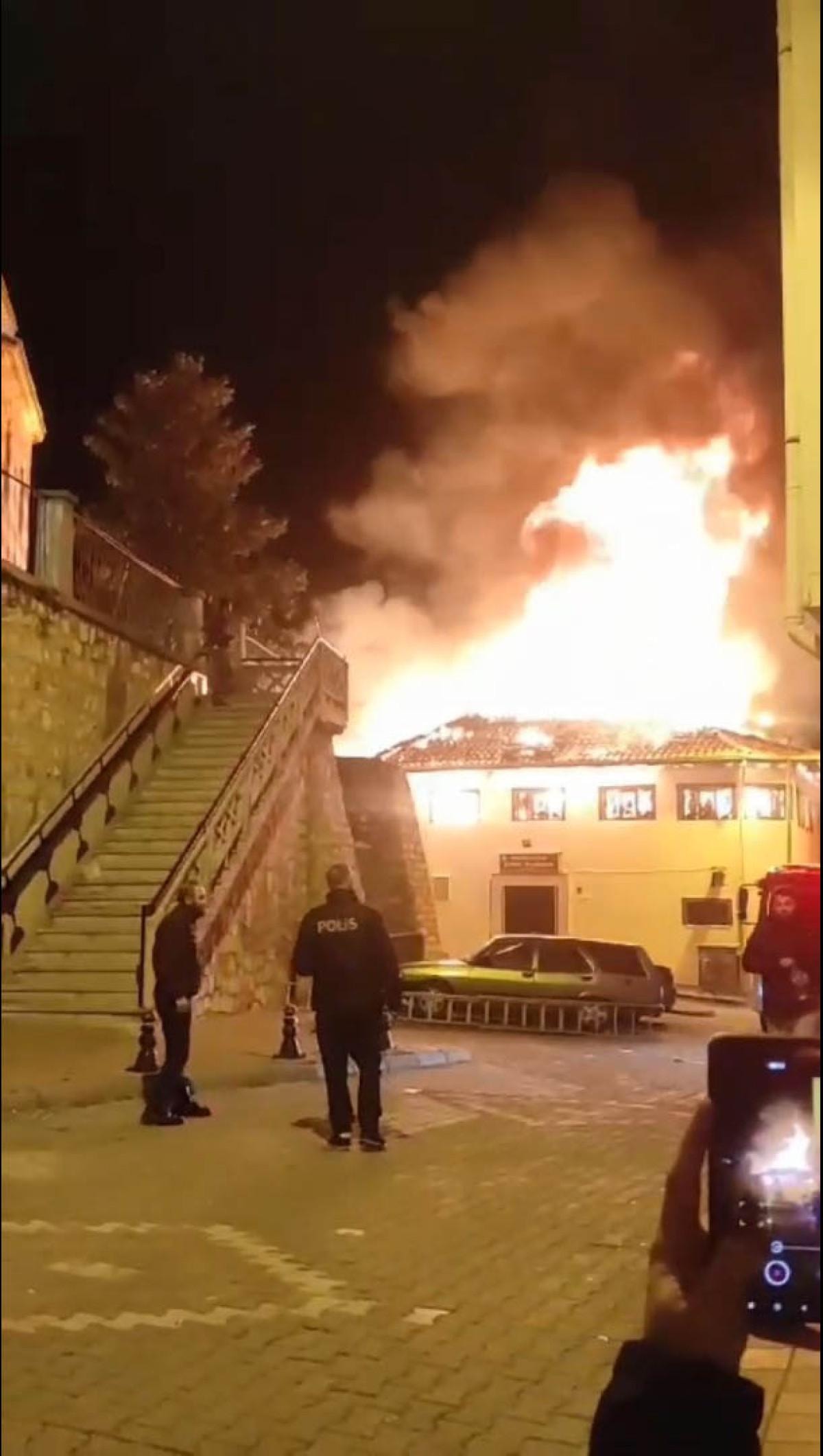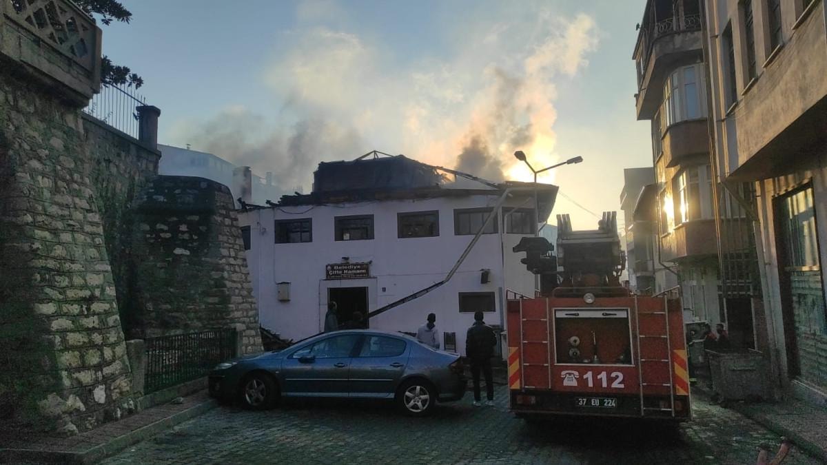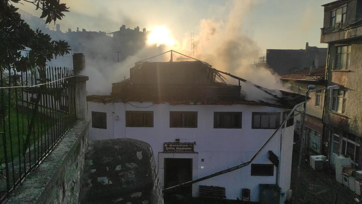 Yangında, tarihi hamam kullanılamaz hale geldi.