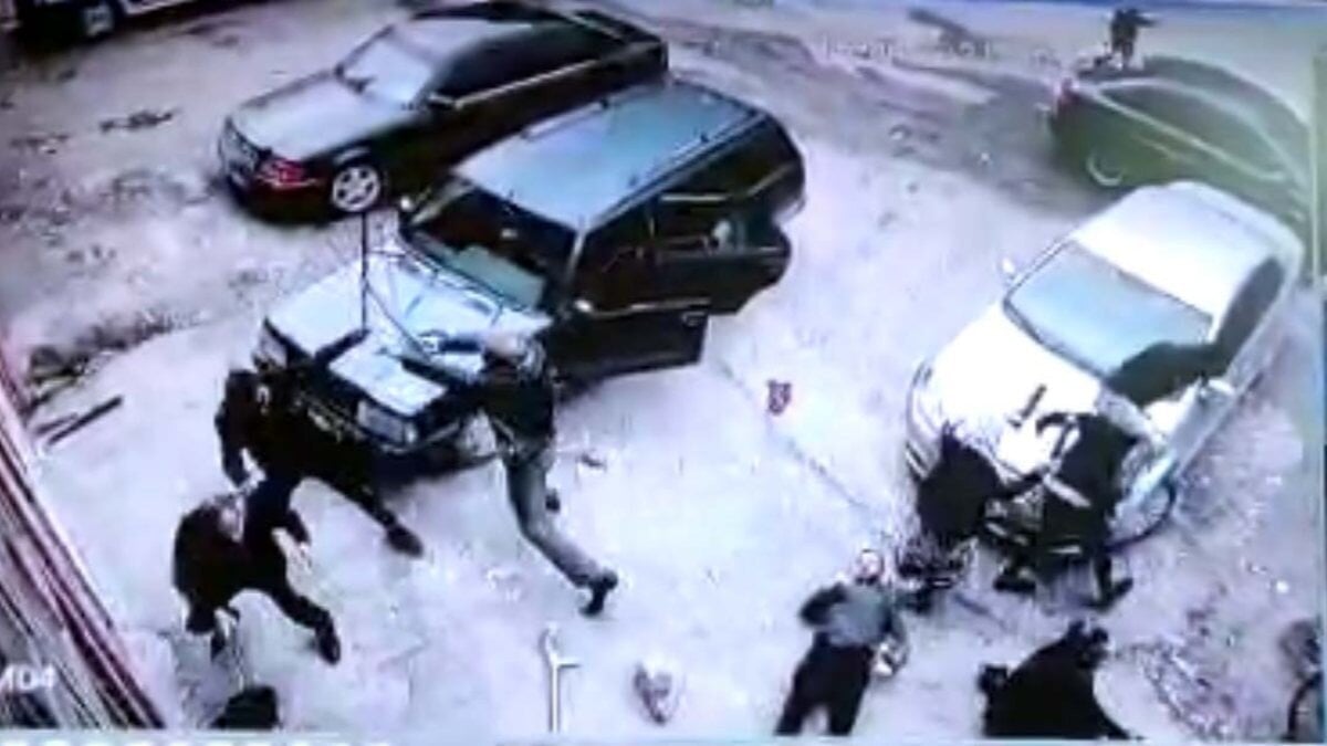 Kavga sırasında başına darbe alan bir kişinin yere yığıldığı, kadınların da kavgaya karıştığı ve iki grubun birbirini darbettiği görüldü.