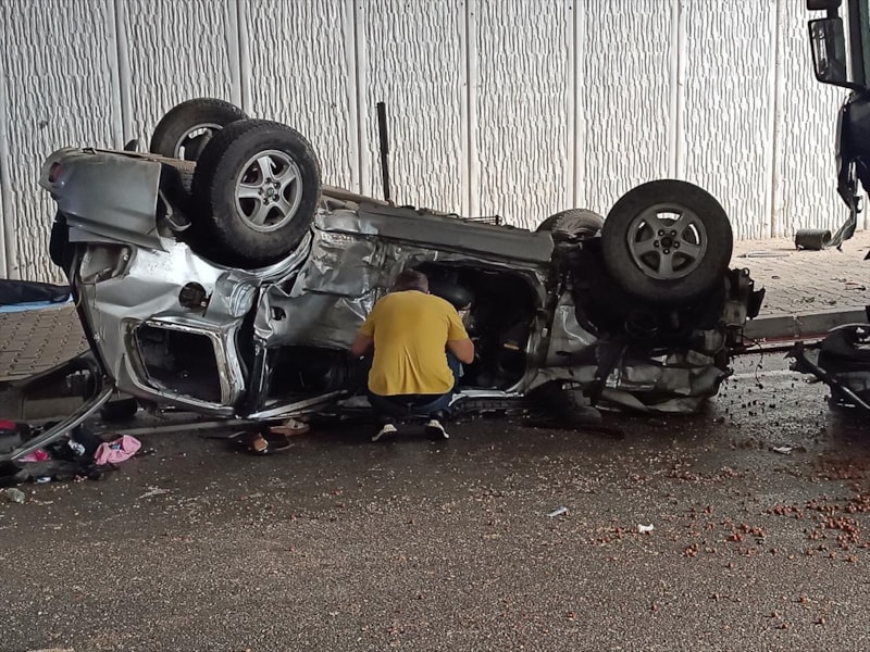 Tır sürücüsü ile otomobildeki V.I, Ç.K, O.Y.K. ve U.A.K. yaralandı.