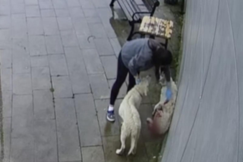 Kanlar içerisinde kalan sokak köpeklerinden bir tanesi yaralı halde Cide Devlet Hastanesi'nin önüne geldi.