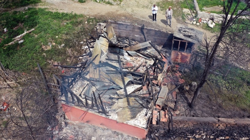 O gece hepimiz uykudaydık. Oğlumun çığlığıyla uyandık. Alevler her yeri sarmıştı. Kapıyı açtığım anda üzerimize ateş püskürdü. Camdan dışarı atladık, başka çaremiz yoktu. Hayvanlarımıza komşular yetişti, sağ olsunlar. Ama altı tavuğumuzu kaybettik. Şimdi ortada kaldık. Ne evimiz var ne barınağımız. Ambulans geldi, yanıklarıma müdahale etti. Hastaneye gitmemi söylediler ama bu halde burayı bırakıp gidemedim.