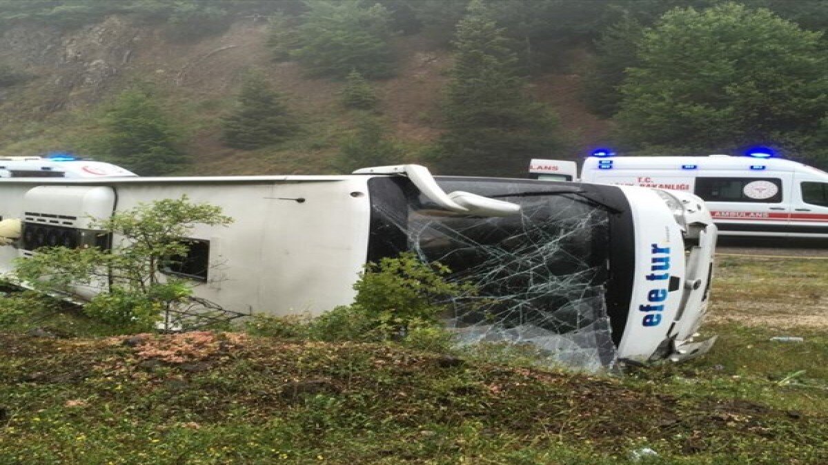 İstanbul'dan İnebolu'ya giden sürücüsü henüz öğrenilemeyen 41 EF 169 plakalı yolcu otobüsü, Kastamonu-İnebolu karayolu Tünel mevkisinde devrildi.