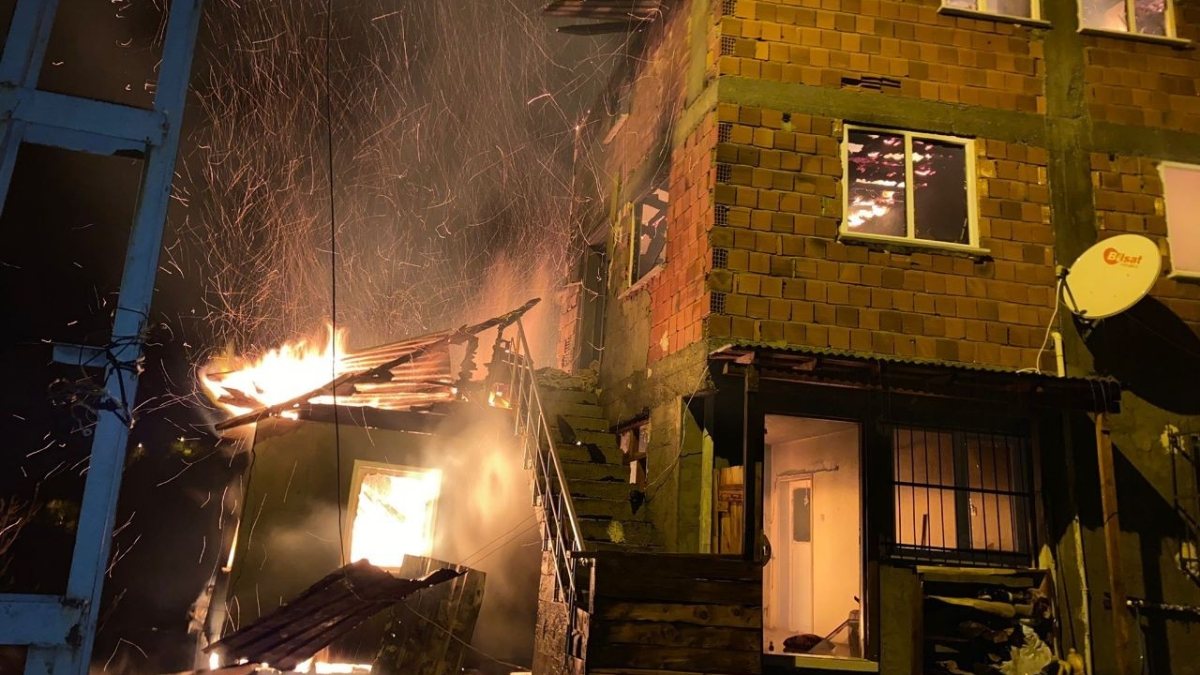 Evdeki sobadan çıkan kıvılcımların odunları tutuşturması sonucu alevler büyüdü.