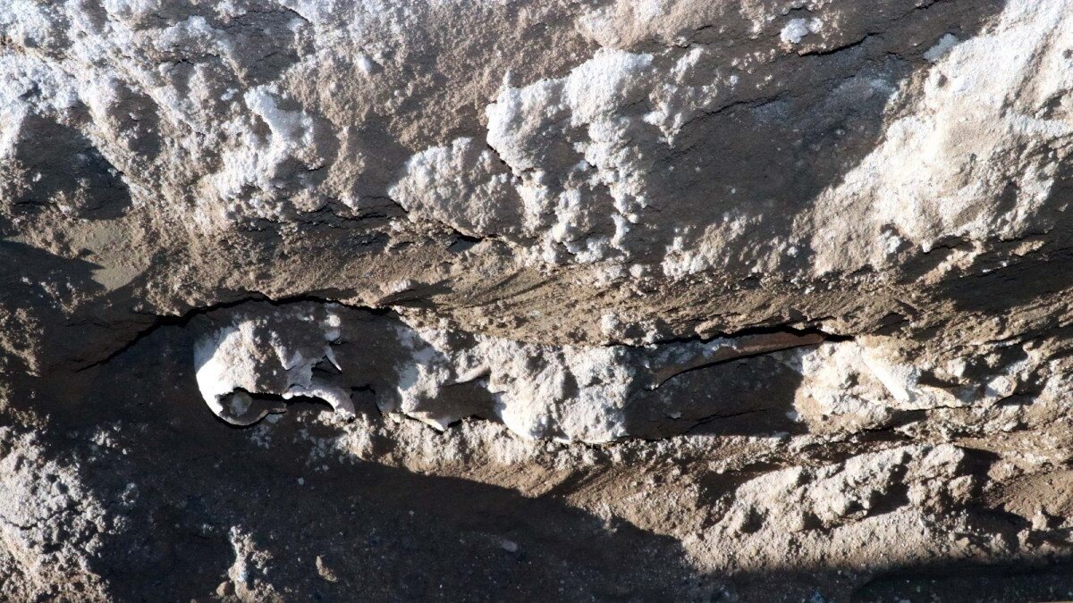 Bu kapsamda yol üzerinde, yer altına doğal gaz borusu döşendiği sırada, insana ait olduğu belirtilen iskelet ile karşılaşıldı.
