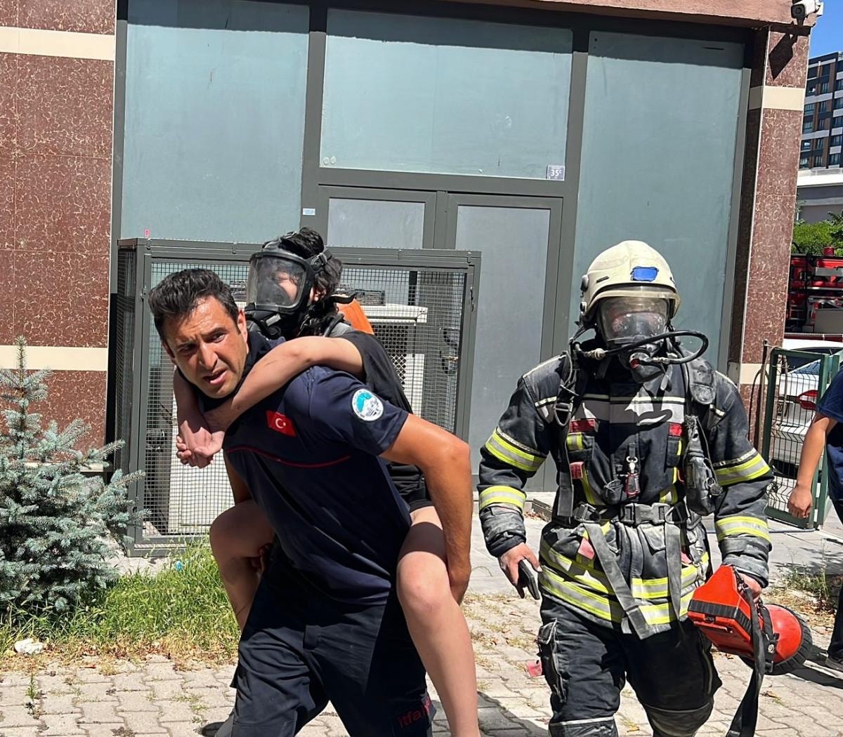 Ekipler, mahsur kalanları tahliye çalışmalarına başlarken, itfaiye ise yangına müdahale ediyor.