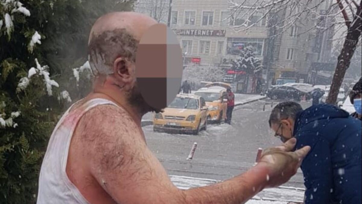 Alevler içinde kalan Yaşar K.'ye ilk müdahaleyi meydandaki polisler yaptı. Yangın söndürme tüpüyle yapılan müdahale ile alevler söndürüldü.