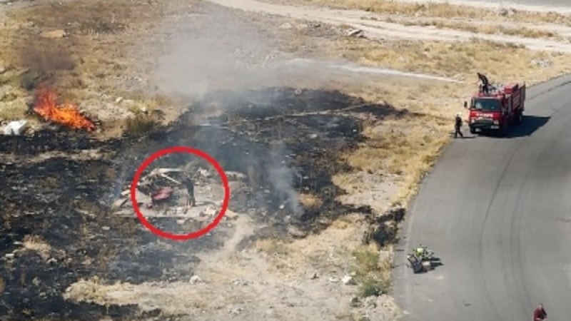 Öte yandan, yangın söndürme çalışmaları sırasında kadının, alandan uzaklaşmayıp salçasını karıştırmaya devam ettiği anlar ise çevredekilerin cep telefonu kamerasıyla görüntülendi.