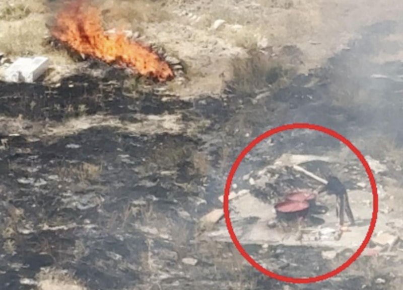Melikgazi ilçesinde bir kadının, boş arazide salça kaynatırken yangına neden olduğu iddia edildi. İtfaiye ekiplerinin yangını söndürme çalışmaları sırasında da kadının salçayı karıştırmaya devam ettiği anlar, cep telefonu kamerasına yansıdı.