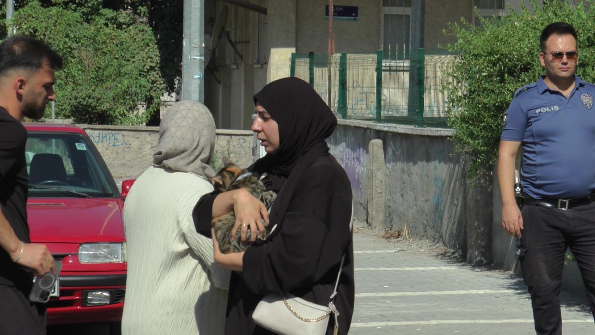 Öte yandan, yangının ardından dumandan kaçan bir kadın da evden aldığı kedisiyle kendini dışarı attı.