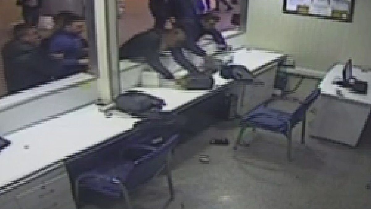 Güvenlik kameraları tarafından da kaydedilen olayda saldırganlar, kapıları tekmeleyerek bilgisayarları ve yazıcıları yere fırlattı.