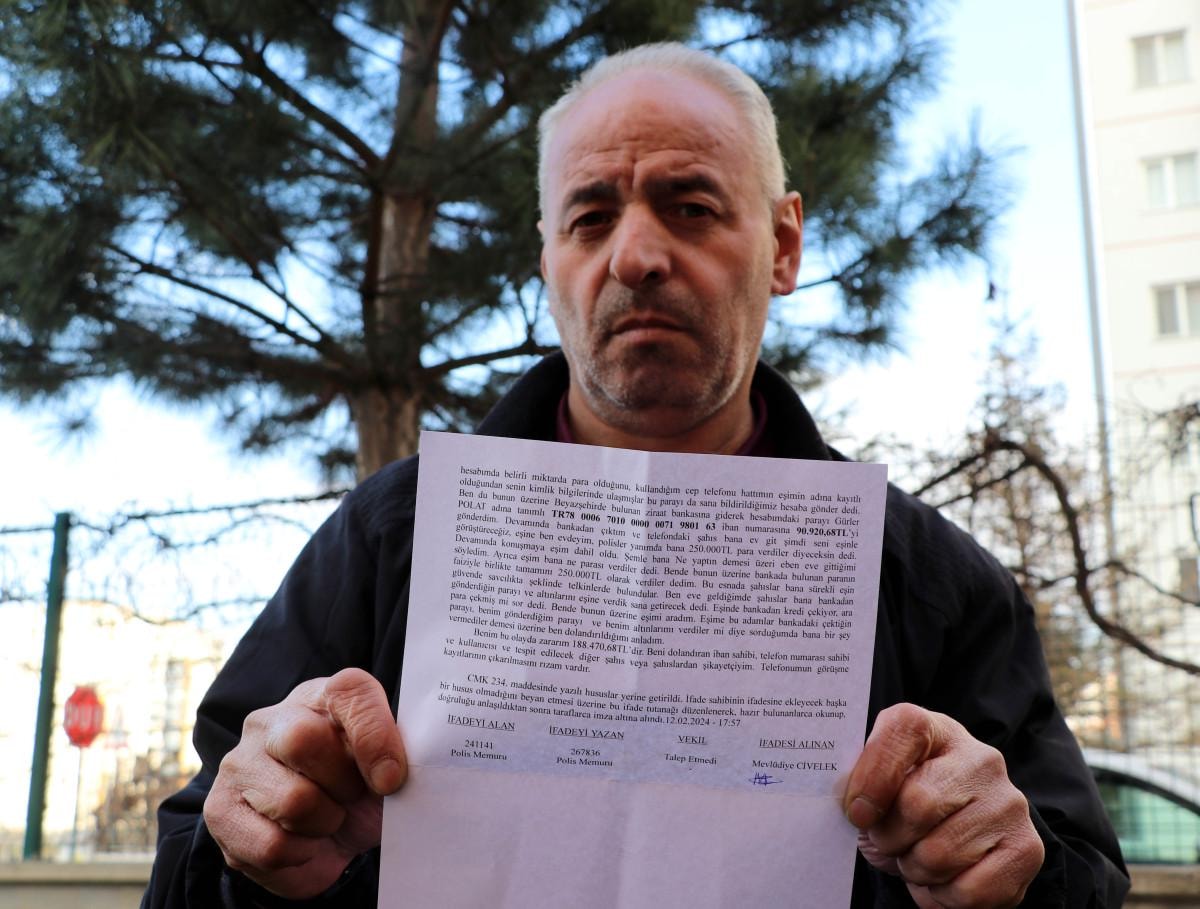 'Seni oradan saat 14.30'da gelip alacaklar' dediler. Tekrar telefon açıp, bankaya gitmemi ve kredi çekmemi söylediler. O anda 'Korkacak bir şey yok eşinin yanında polisler var, eşine 250 bin TL verdik' dediler. Eşimle beni telefonda konferans yaptırdılar. Onunla da yüzleştik. Eşime, 'Parayı aldın mı?' dedim. O da 'Aldım' dedi." ifadelerini kullandı.