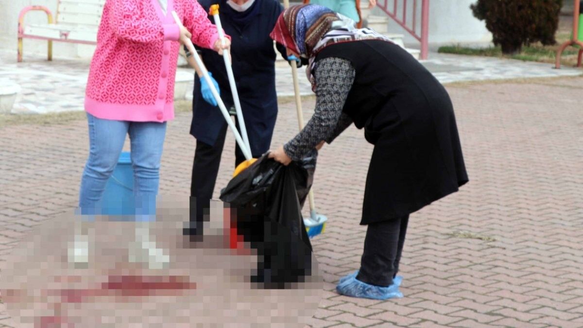 Olay yerindeki kan izleri pansiyonda görevli kadınlar tarafından temizlendi.