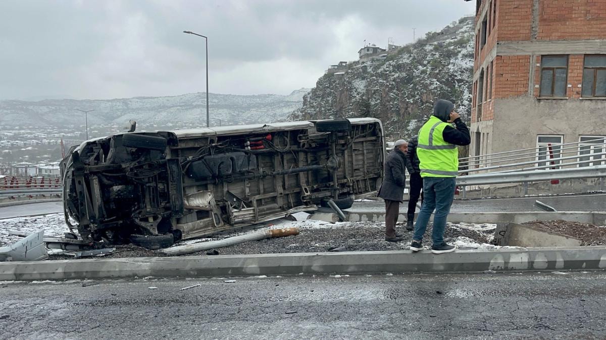 Kayseri'nin Melikgazi ilçesinde seyreden servis minibüsü şoförü E.G., kar yağışı nedeniyle kayganlaşan yolda direksiyon hakimiyetini kaybetti.