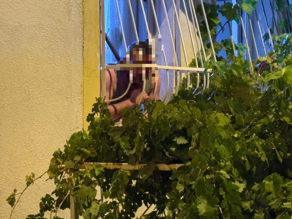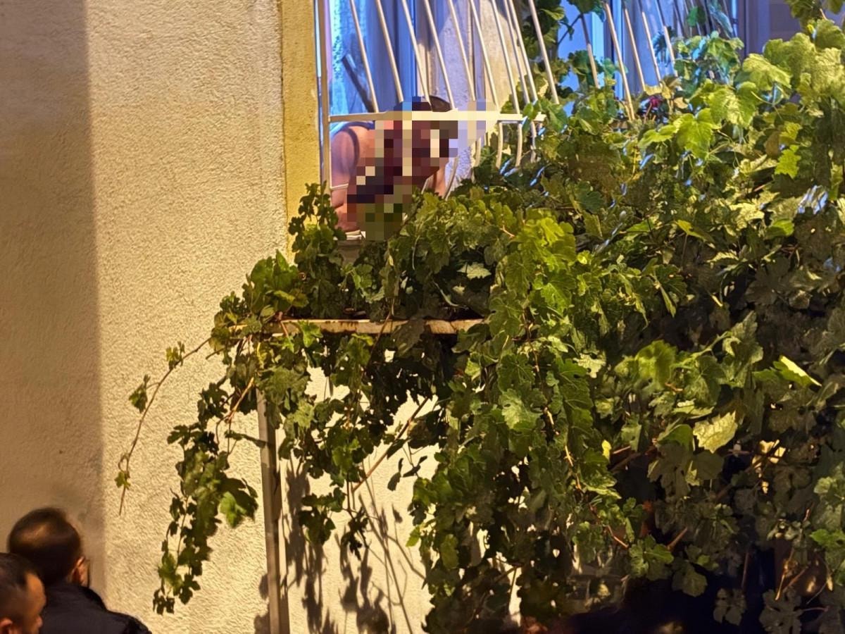 Pencereden içeri çekilen D.K., sağlık ekipleri tarafından hastaneye götürüldü.