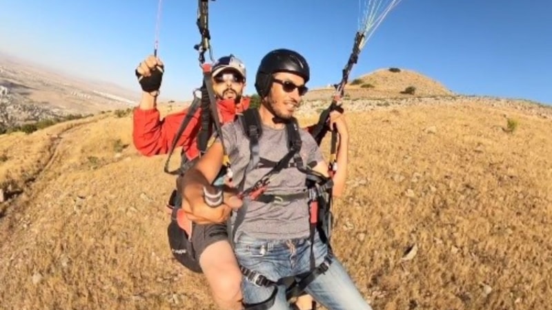 Kayseri'nin Talas ilçesinde Ali Dağı'ndan havalanan pilot Emin Gürpınar yönetimindeki paraşütün sol kumanda ipi, kalkıştan bir süre sonra düğümlendi.