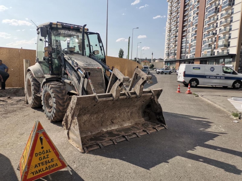 Sahabiye Mahallesi'nde bulunan inşaatta çalışan iş makinesi, doğalgaz borusunu patlattı.