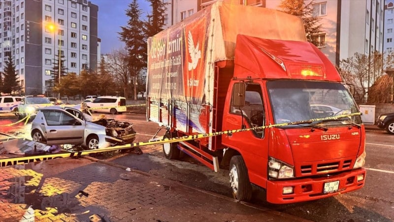 Kayseri'nin Melikgazi ilçesi Gesi Fatih Mahallesi'nde V.Ş. yönetimindeki otomobil, park halindeki kamyona çarptı.