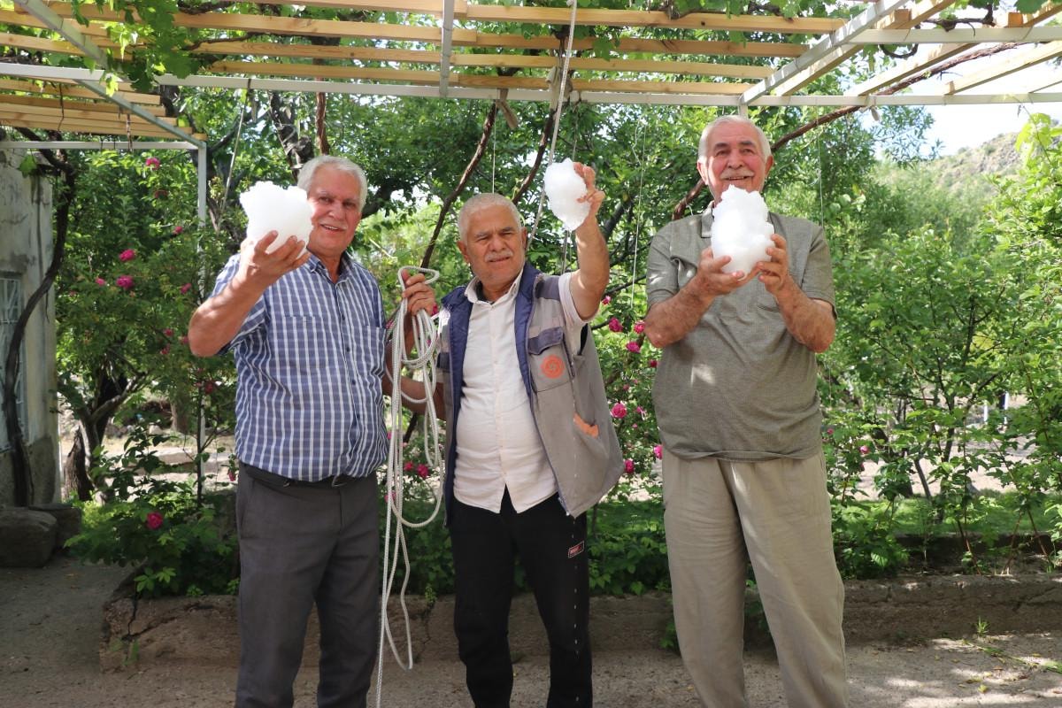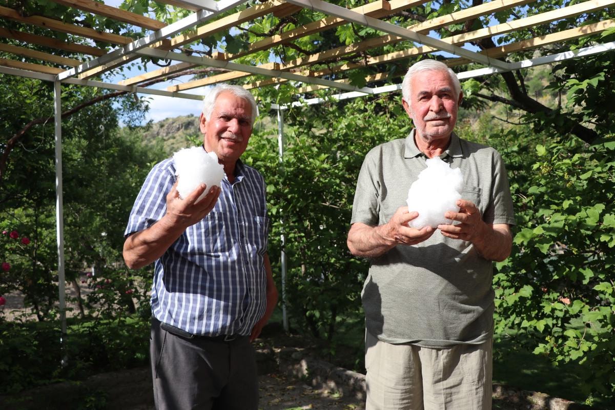 Yaz günlerinde terlediğimiz zaman, sıcak günlerde, bahçe işleri ile uğraşırken, dışarıdan gelen insanlara burada yardımcı oluyoruz, kar veriyoruz. Ayranı bu karlı suyla yaparız, içeriz. Pekmezimizi de kara dökeriz, kaşık kaşık yeriz. Bu geleneği yaşatmak için arkamızdan gelen arkadaşlarımız var ama bu işin sonuna doğru geliyoruz." diye konuştu.