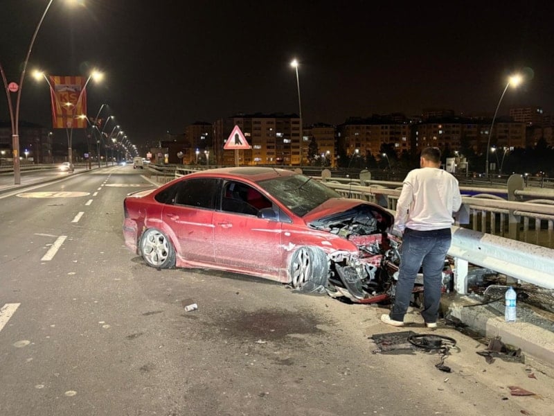 Kocasinan ilçesinde meydana gelen kazada, sürücüsünün kontrolünü kaybettiği otomobil karşı şeride geçerek bariyerlere çarptı. Kazada yaralanan olmazken, sürücünün ailesini görüntülü arayarak bilgi vermesi dikkat çekti.