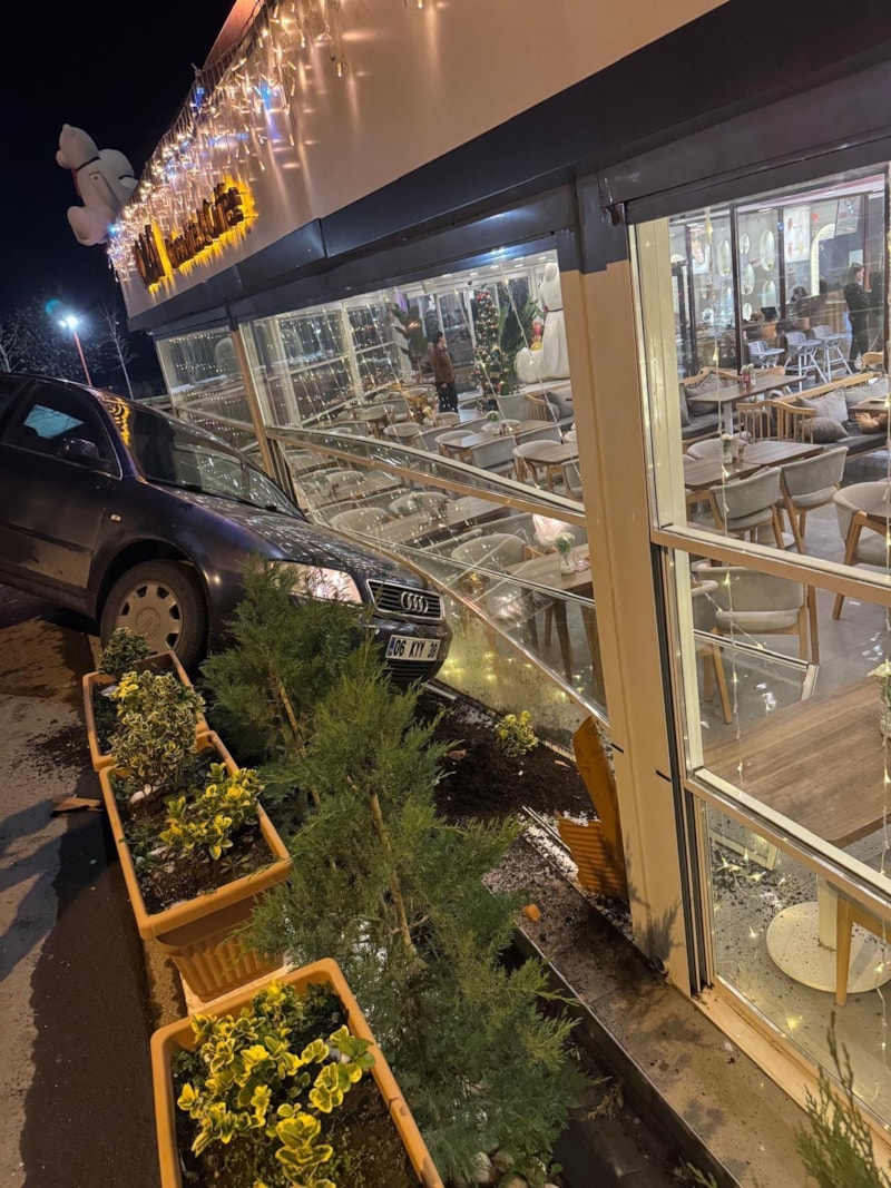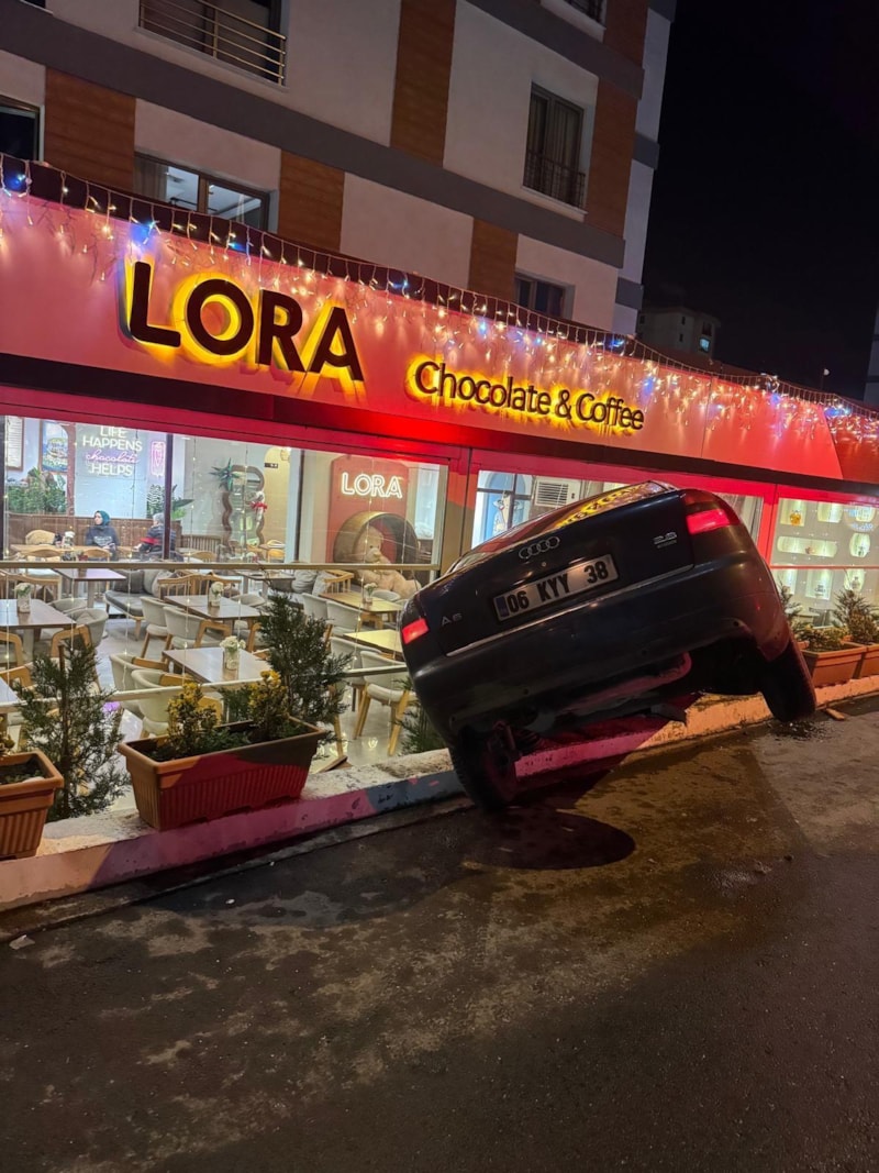 Kayseri’nin Talas ilçesine bağlı Bahçelievler Mahallesi Soylular 1 Sokak’ta, S.E.U. idaresindeki 06 KYY 38 plakalı otomobil, sürücünün direksiyon hakimiyetini kaybetmesi sonucu yol kenarında bulunan bir kafeteryaya girdi.
