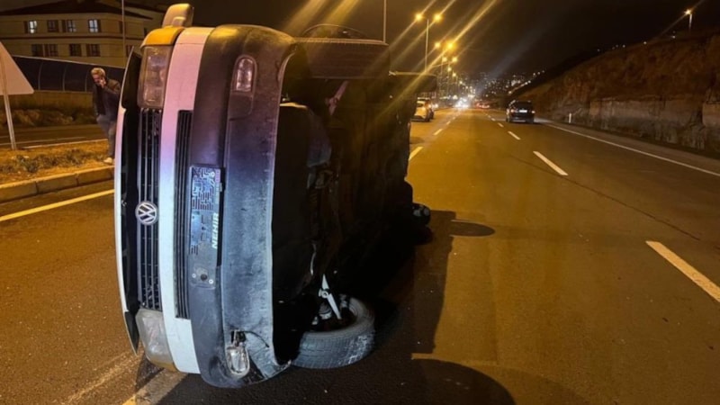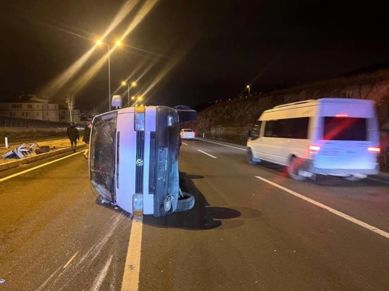 Kayseri'nin Melikgazi ilçesi Gaffar Okkan Bulvarı'nda meydana gelen kazada 38 AEE 312 plakalı minibüs, köpeğe çarptıktan sonra yan yattı.
