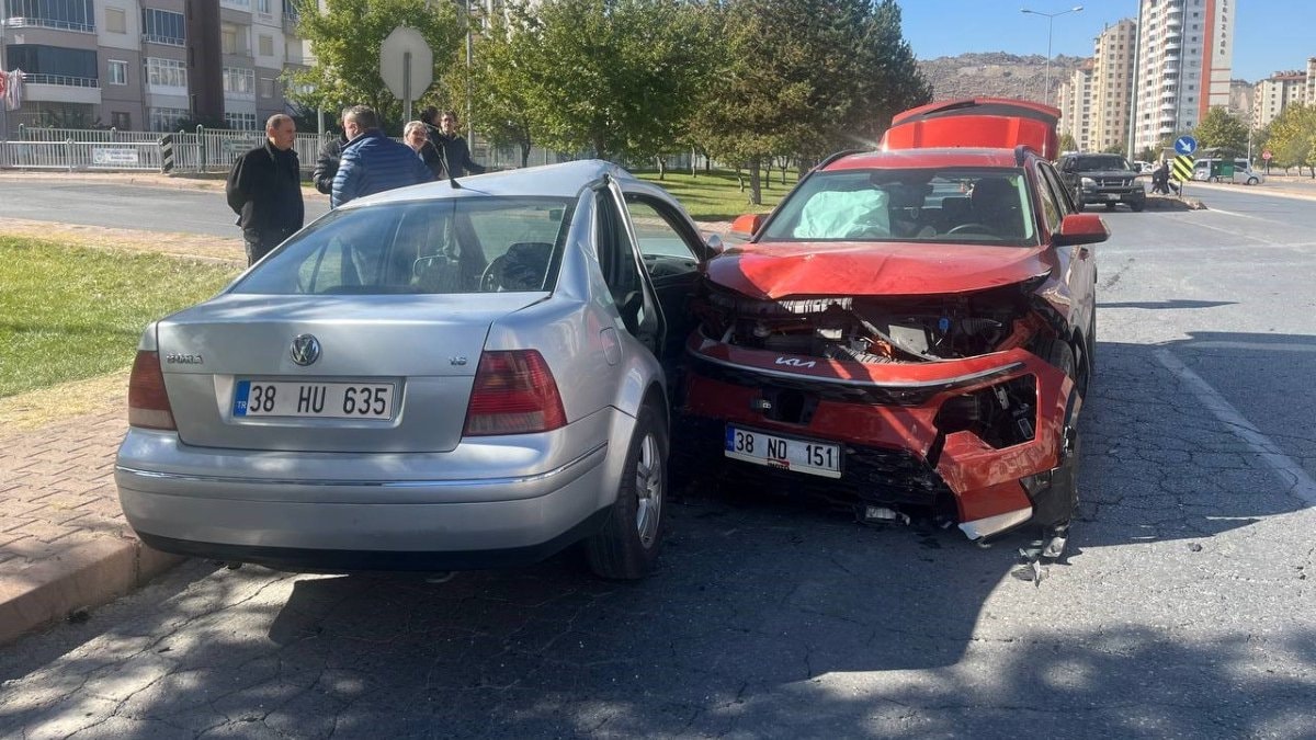 Kayseri'nin Melikgazi ilçesine bağlı Altınoluk Mahallesi Deniz Şafağı Caddesi üzerindeki kavşakta meydana gelen kazada, N.D. idaresindeki otomobil ile H.H.U. idaresindeki otomobil kaza yaptı.