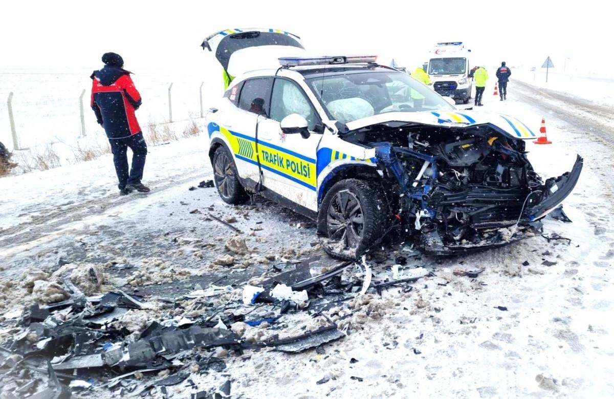 Kayseri-Malatya kara yolunda seyreden polis aracı, Akmescit mevkiinde bir otomobil ile çarpıştı.