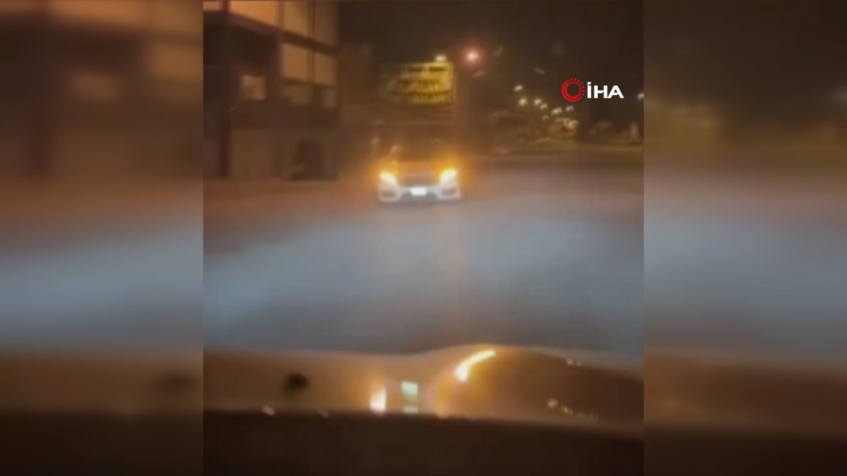 Bir aracın polis otomobili önünde drift attığı görüntüler de kameralarca kaydedildi.