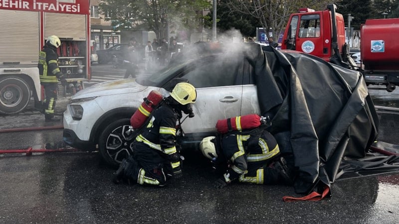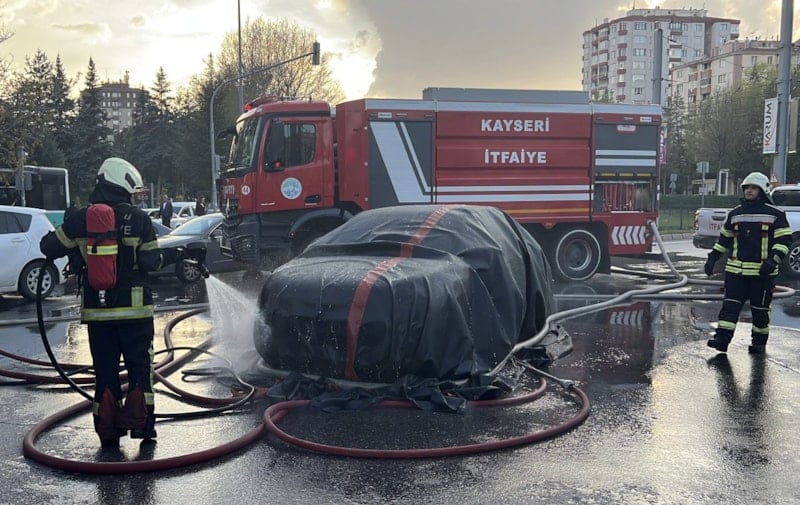 Melikgazi ilçesinde seyir halindeyken alev alan elektrikli otomobil, itfaiye ekiplerinin yangın battaniyesi kullanarak gerçekleştirdiği müdahale sonucu söndürüldü. Olayda araçta ciddi maddi hasar meydana geldi.
