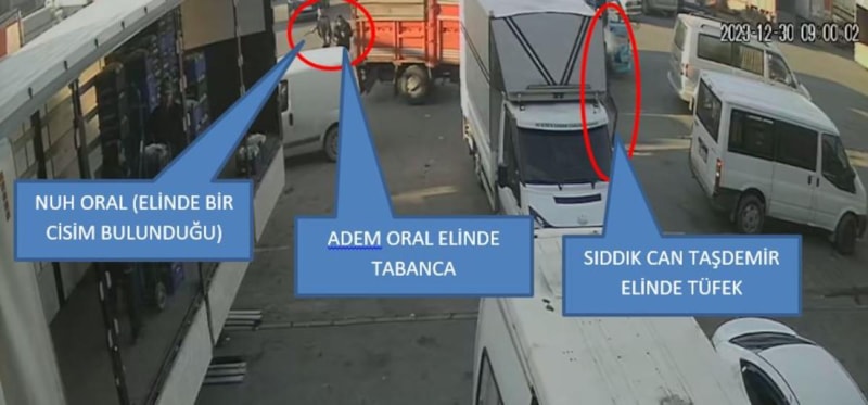 Bu arada silahlı kavgaya ilişkin güvenlik kamera görüntüleri ortaya çıktı. DHA’nın ulaştığı görüntülerde, Oral ve Taşdemir ailesinin kamyonlarının yan yana geldiği, Oral ailesinin içinde olduğu kamyonun hafif şekilde Taşdemir ailesinin kamyonunun önüne kırdığı, bu sırada tarafların kamyondan indiği ve silahlı çatışmanın çıktığı, Adem ve Nuh Oral’ın dışarıda olduğu sırada kamyonda bekleyen Sözleşmeli Er Uzun’un ise tüfekle Sıddık Can Taşdemir tarafından vurulduğu görüldü.