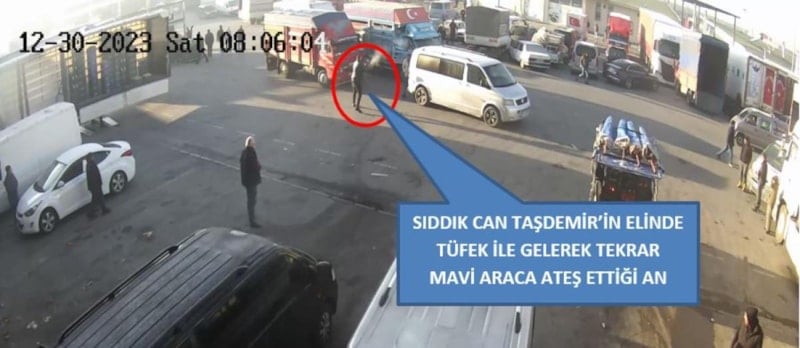 Ayrıca, Sıddık Can Taşdemir’in ilk ateşi ettikten 7 dakika sonra yeniden kamyona doğru hızla koştuğu ve tekrar ateş ettiği görüldü.