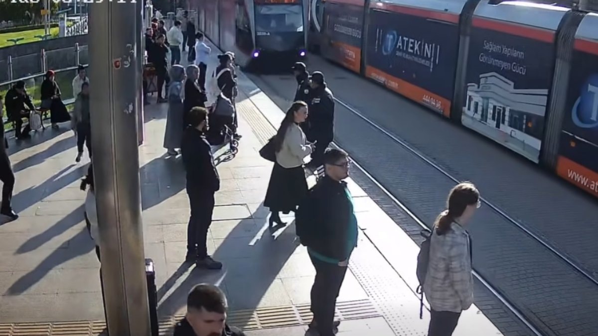 Görüntüleri sosyal medya hesabından paylaşan Büyükşehir Belediyesi bünyesindeki Ulaşım A.Ş., “Bugün sabah saatlerinde raylı sistem hattımızda, kulaklığı takılı olduğu için çevresini fark edemeyen bir yolcumuz, karşıya geçmek isterken güvenlik personelimizin dikkati sayesinde olası bir kazadan son anda kurtuldu.
