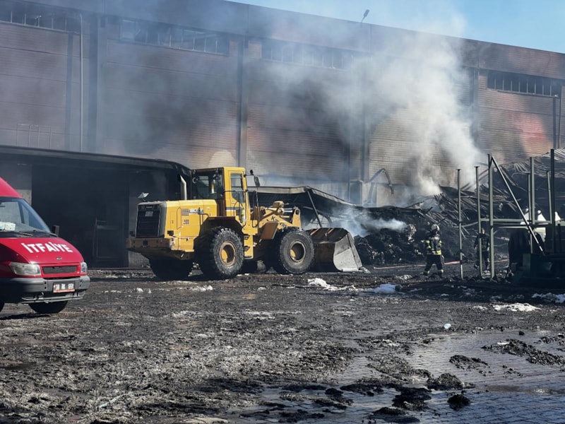 Kısa sürede büyüyen alevler, fabrikayı ve bahçesindeki malzemeleri kapladı.