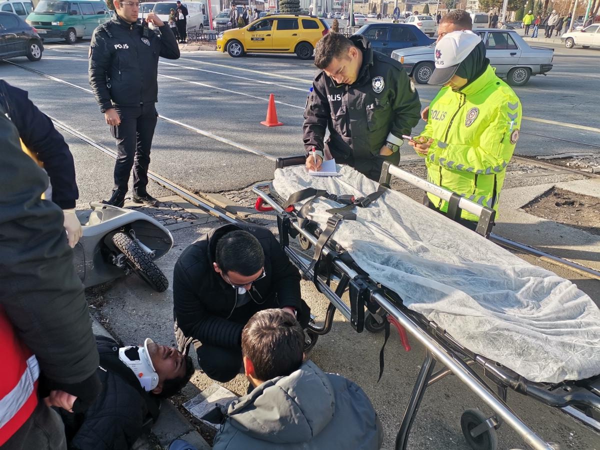Kayseri'de merkeze bağlı Cumhuriyet Meydanı'nda tramvay ile mobilet çarpıştı.