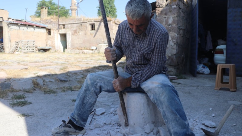 Bölgede yaşayan taş ustası Dursun Güven, dorak taşına yıllardır şekil veriyor.