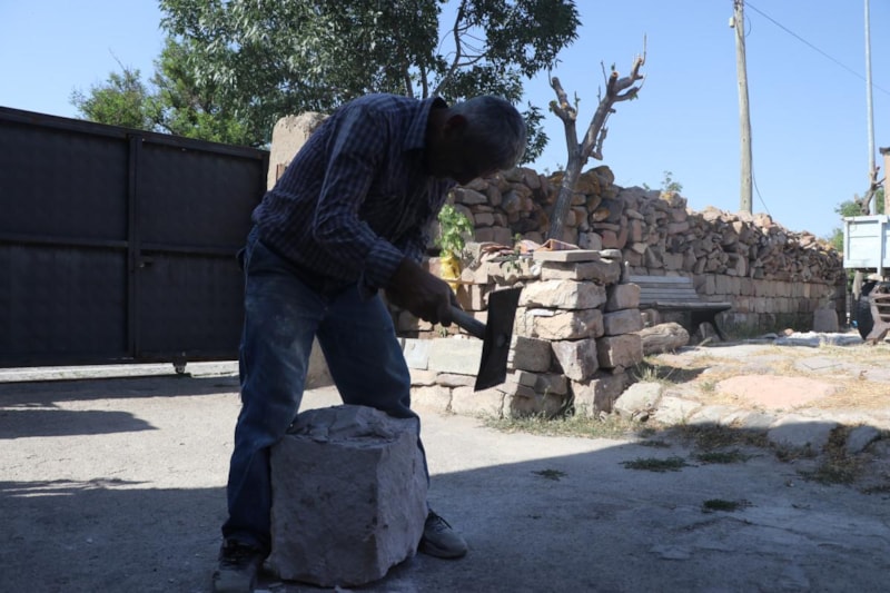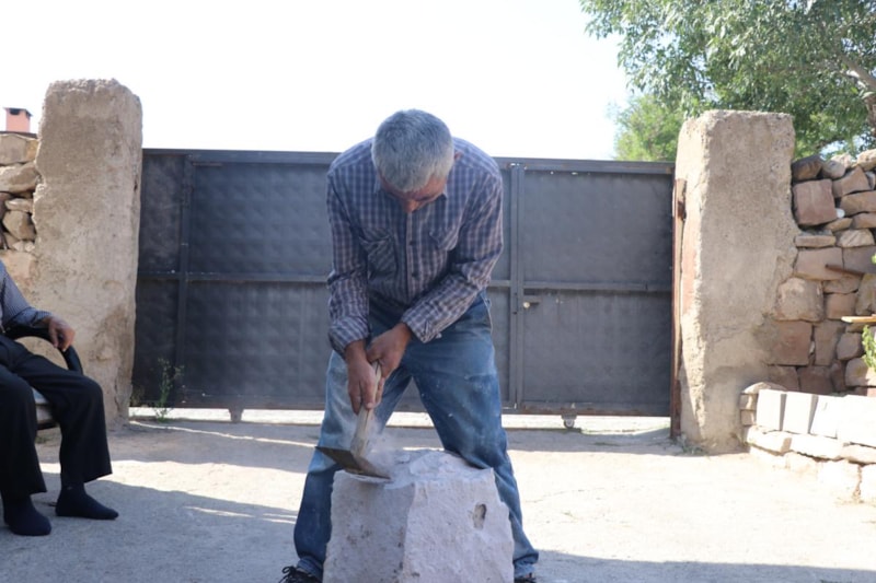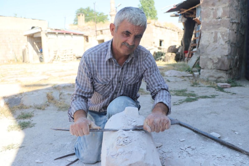 Eski dönemlerde buzdolabı olarak kullanılan bir taş. Bu işe babamın yanında çıraklık yaparak, toprak atarak başladım. O da dedemden öğrenmiş. Bu işi 20 yıldır yapıyorum. Sürekliliği olan bir iş değil.