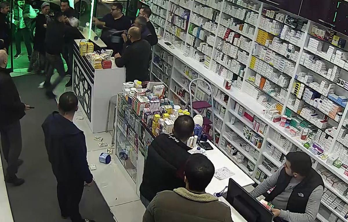 Ardından yanındaki kişiyle tekrardan eczaneye giren şahıs, tezgahta bulunan ilaçları dağıtmaya başladı.