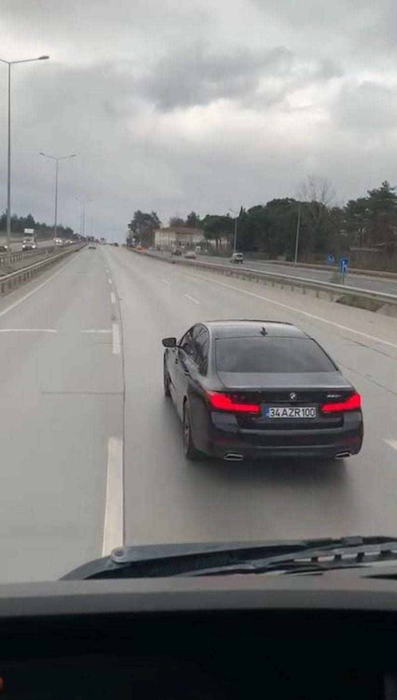 Ardından şerit değiştiren tırın önüne aracını kırarak geçişine engel olmaya devam etti.