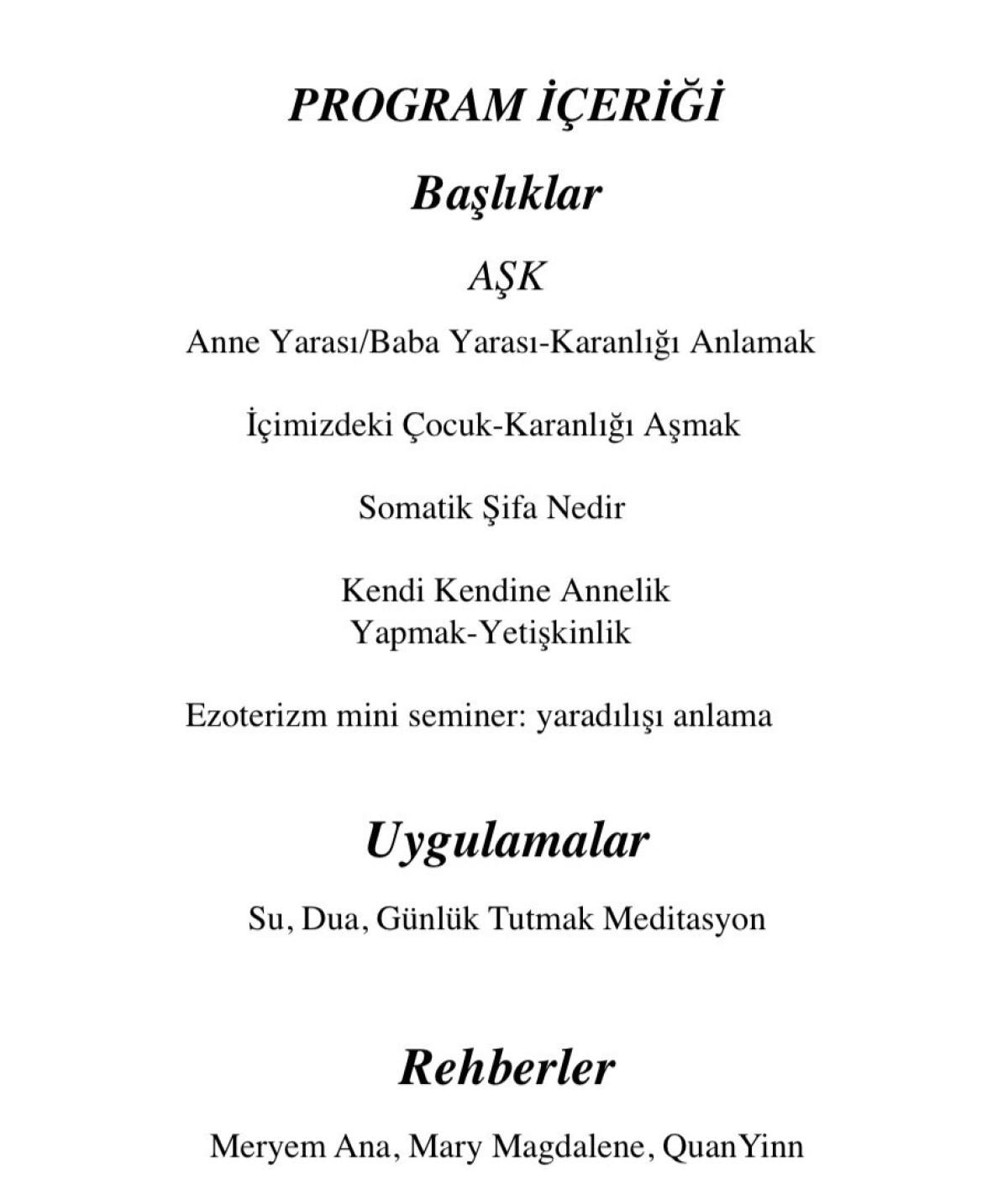 Hiçbir anne evladını sevmez, bunun yüzde 100 garantisini veriyorum. İçimdeki çocukla ilgilendim hayatım değişti’ gibi söylemleri vardı. Sonra aileme bakıyorum, hayatımda bir şey olmadığını görüyorum. ‘Annem beni sevmiyor’ diyorum ve korkuyla daha çok onu izliyordum. Bir yerden sonra anneme ve aileme karşı aşırı öfkeliydim. Psikolojik olarak çok üzüntü içindeydim, sürekli depresyondaydım. Geçmiş tramvalarımdaydım. İçimizdeki Çocuk çalışması yapıyordum. ‘İçindeki çocuk ile bir gün ilgilenmezsen seni cezalandırır. 2 ay boyunca hayatın mahvolur. Arkadaşlarınla ilişkilerini bozar’ gibi söylemleri olduğu için korkup çalışıyordum. İçimizdeki çocuğa oyuncak almak gerekiyor. Paramı da ona veriyorum. Bir yerden çalışmıyorum da, tamamen daha da çok çöküntüye uğruyordum. Zenginlik vaat etmesi de etkiledi. ‘Mutlu ilişki, başarılı olmak, her şeyin sebebi anne. Anne izin vermediği için biz onlara sahip değiliz. Ben şu an mutlu ve başarılı değilsem, işim yoksa bunları hepsi annem istemediği içindir. Rahim alanından beni engellediği içindir’ söylemleriyle daha çok bağlandım. Benim gibi mağdur olanlara şunu söylemek istiyorum; Manevi arayıştaydım ve bir doğru söz söyledi ona bağlandım. Birine bağlanmamak gerekiyor. Körü körüne inanmamak ve sorgulamak gerektiğini düşünüyorum.