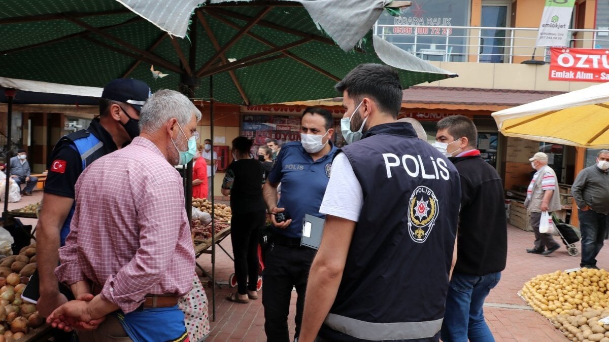 Bu sırada maske takmadığı belirlenen pazarcıya ceza yazılmak istendi.