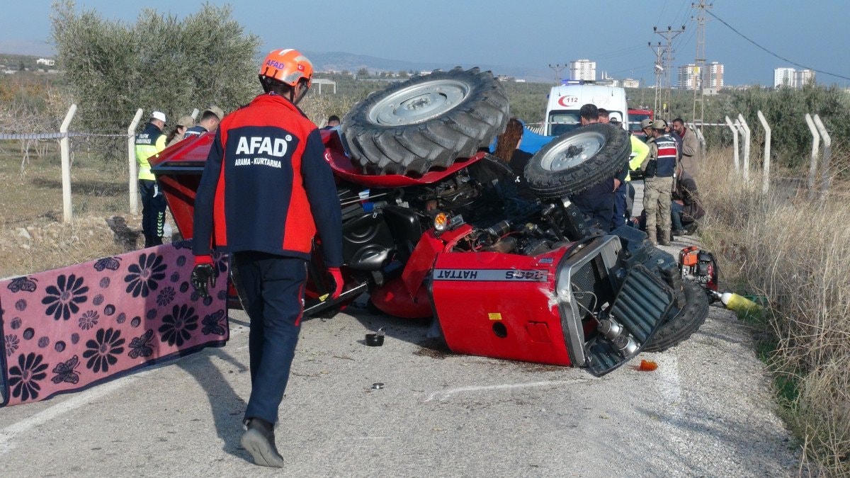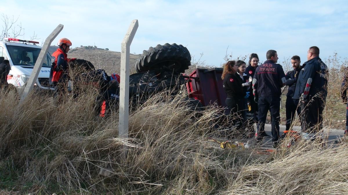 Kilis'te Demirışık köyünde zeytin hasadından dönen Yusuf Karadaş’ın kontrolünü yitirdiği traktör devrildi.