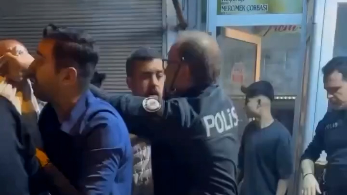 Polis ekiplerine saldıran ve yumruk atmaya başlayan işletme sahiplerinin o anları da bölgede bulunan vatandaşlar tarafından kayda alındı.