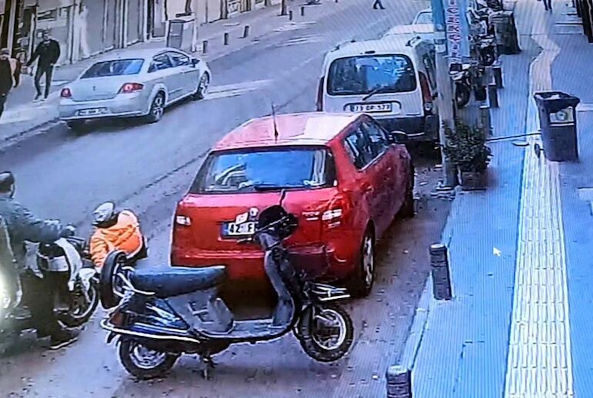 Caddedeki bir iş yerinin güvenlik kamerasına yansıyan görüntülerde; Kaya'nın yaralandığı an görülüyor.