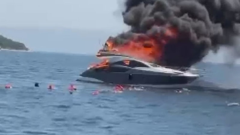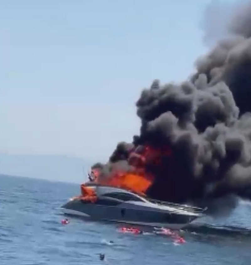 Kınalıada açıklarında içinde 12 kişinin olduğu teknede yangın çıkarken, yolcular denize atlayarak kurtuldu.