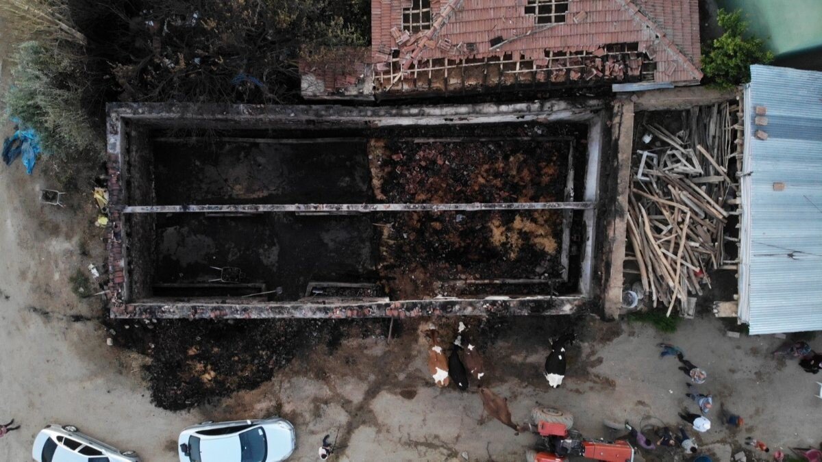 Zehirlenerek ölenler olmuş. Toplamda 13 hayvanım vardı. İşte 8 tanesi yandı 5'i de burada” diye konuştu.Anne Semiha Kartal (76) ise mandıranın tamamen kül olduğunu anlatarak, tek umutlarının devlet olduğunu aktardı.