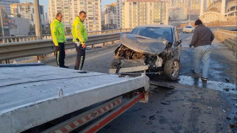 Kırıkkale Alparslan Türkeş Bulvarı'ndaki Terminal Köprülü Kavşağı'nda Mehmet Çalışkan idaresindeki otomobil, yoldaki buzlanma nedeniyle sürücüsünün kontrolünden çıkıp bariyerlere çarptı.