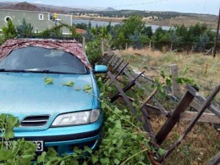 Şiddetli rüzgarda savrulan bir çoban köpeği, tel örgülere çarparak öldü. Belediye ekipleri, şehirde hasar tespit çalışması başlattı.